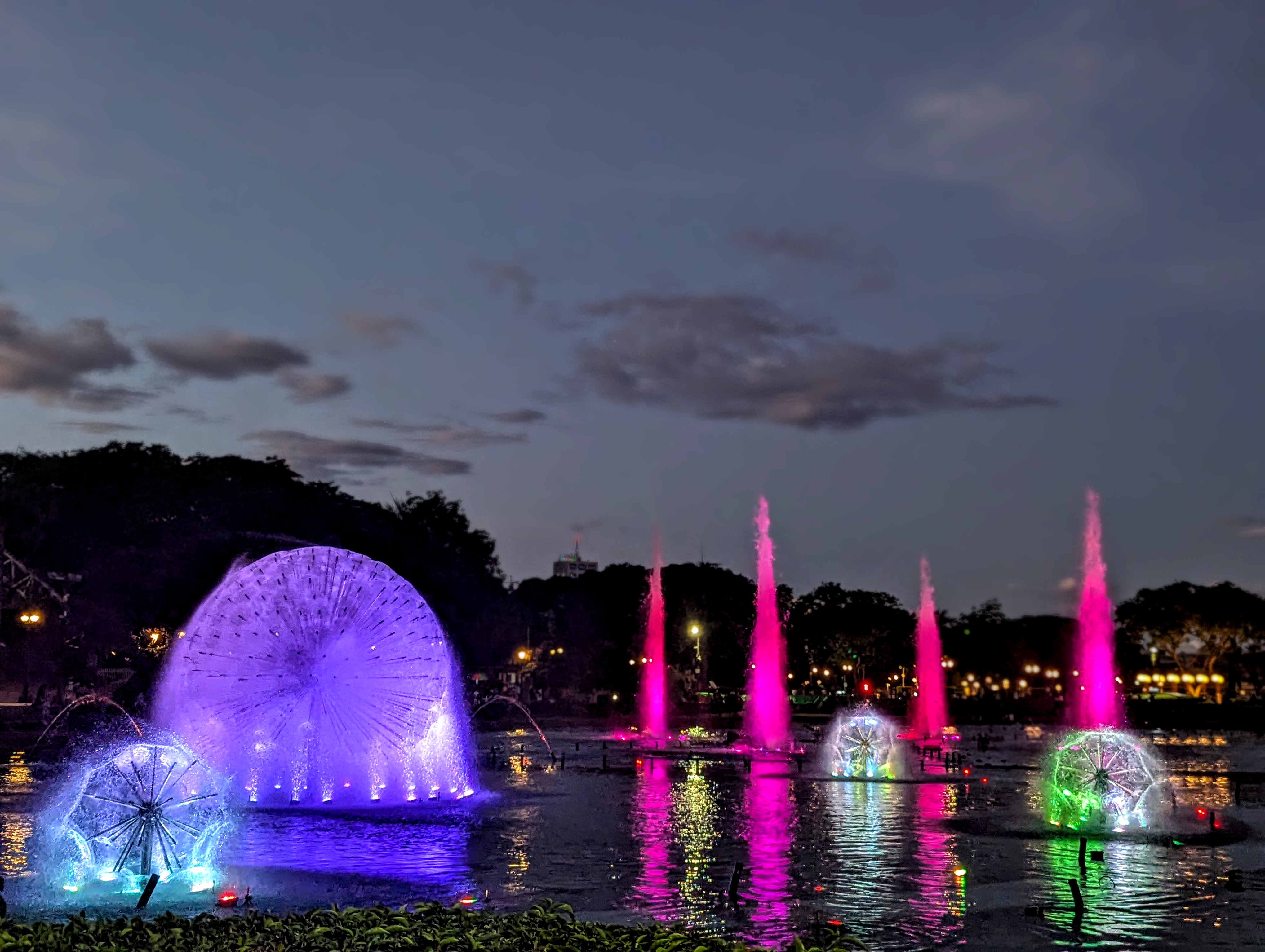 Also, they have one of the best dancing fountains I have seen. People gathered around the lake, kids screaming, and the music started around 6:30 pm. Had some Asian songs, some American ones – but they all were extremely synchronized with the water movement, and you could really follow along the rhythm and beat. They continued playing songs with 5 minute intervals.