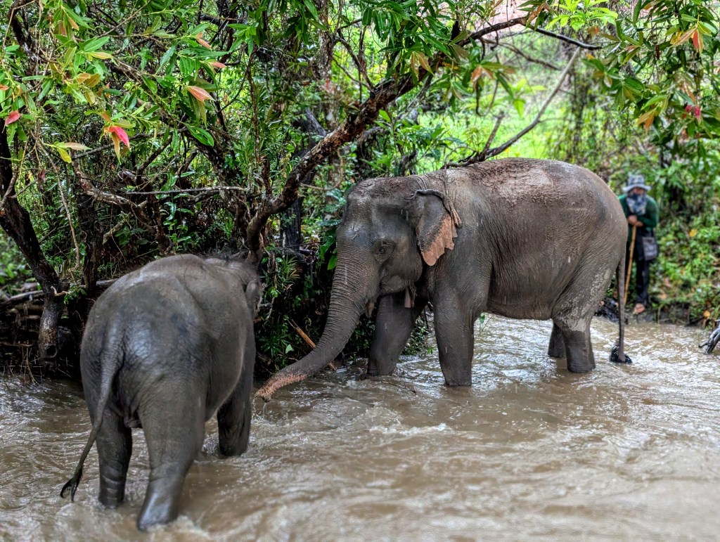 All this time it was raining like crazy, and we were not even able to go elephant bathing down the river. We got all wet, our clothes, our bags, and our souls. Our good mood was draining down to the ground, where the chewing elephants would mix it together with mud.