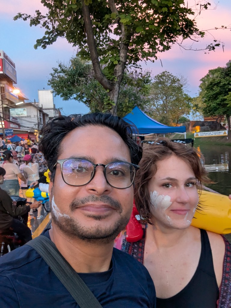 Little did I know that I arrived to Chiang Mai in the very middle of Songkran celebration – water festival. If you do not have waterproof cases, pouches, jackets, and a water gun – boy, you are doomed 😊 Nature had its own plans on Songkran, so as we came out into a 7-11 to get a toastie and vitamin C drink, we almost immediately got baptized by the heavy rainfall. Unable to book Grab or Bolt (apparently everyone was celebrating out on the streets), Dani managed to get a random stranger from 7-11 to give us a lift at Grab price. Sketchy? Oh yeah, totally. But either that, or 5 kilometers of walk with heavy suitcases and tropical rainfall.