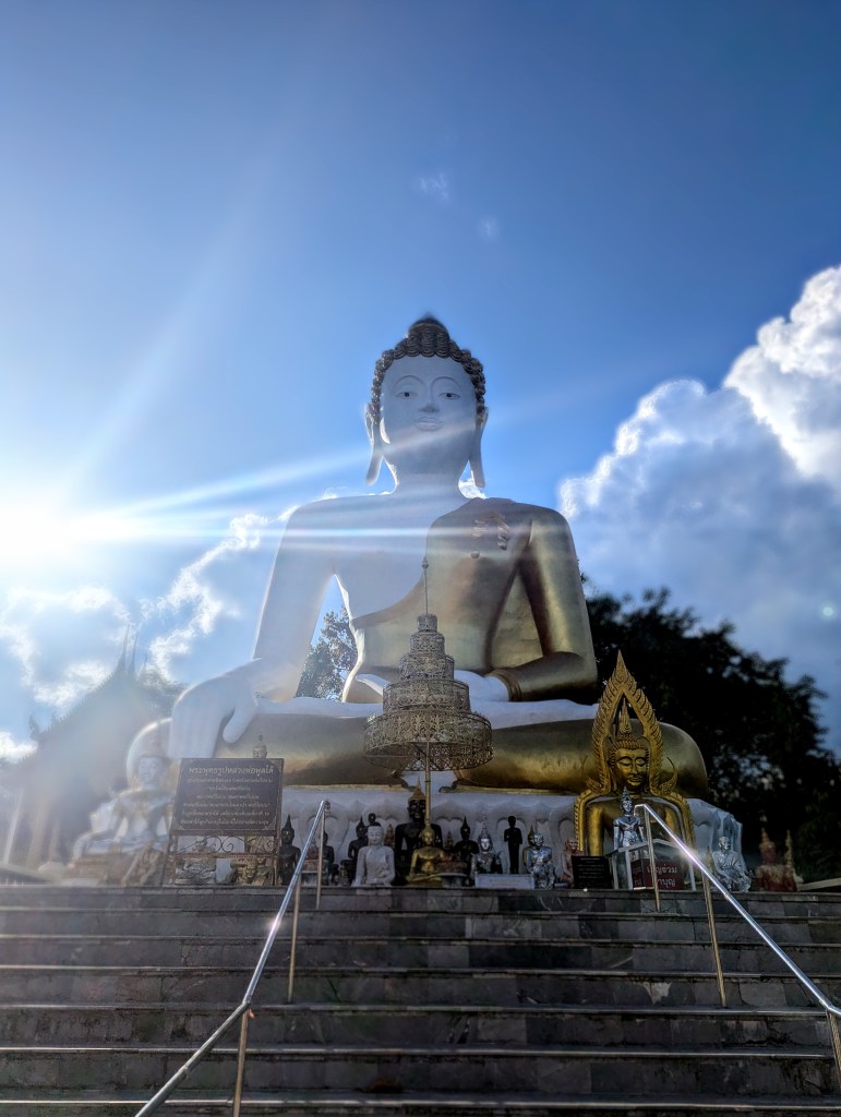 Since I was already flexible and mobile on my bike, I drove another 50 kilometers to see the Wat Prathat Doi Kham Temple, with gigantic golden-white Buddha on the mountains. Because I almost killed my bike on the way up (the road was kinda steep, and I do not have much experience driving uphill, too), I decided to go to the most famous temple, Doi Suthep, the next morning.