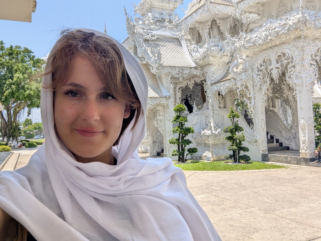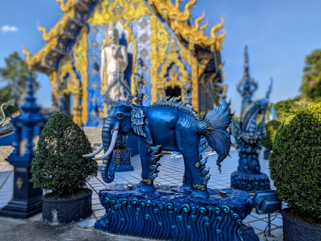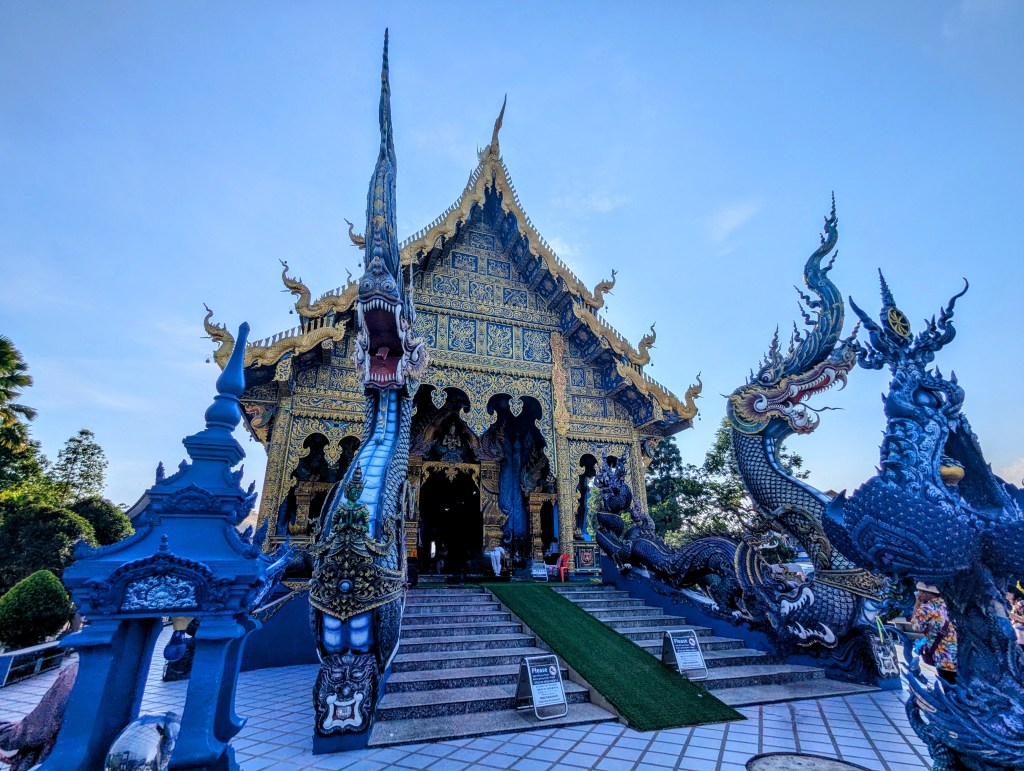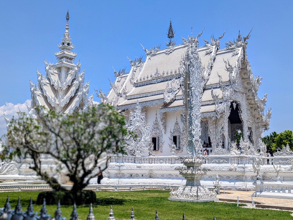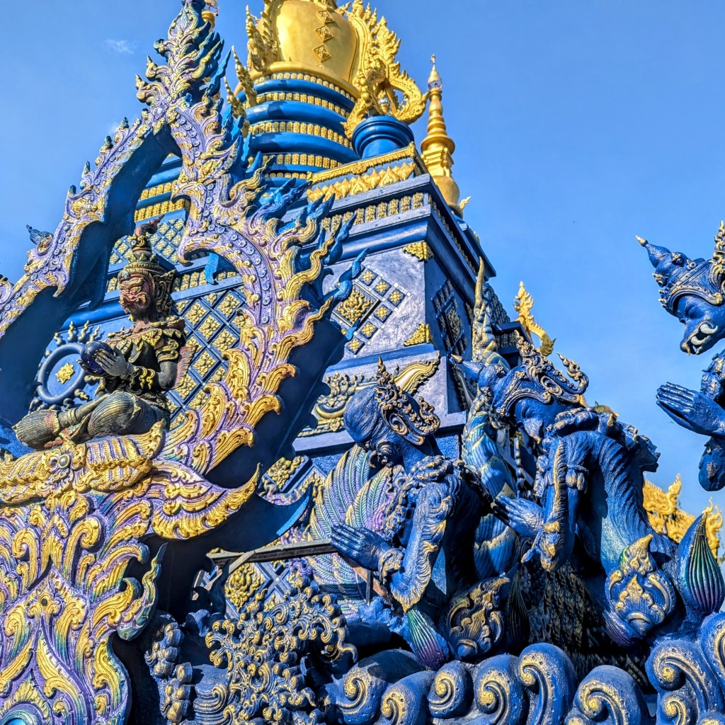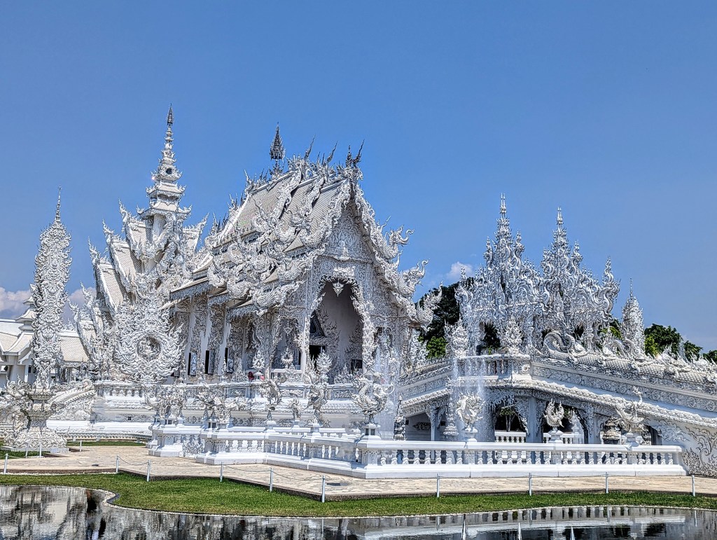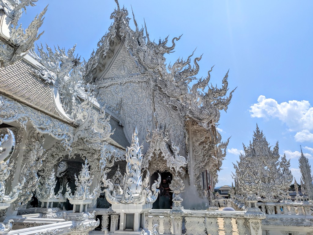 I regret so much not bringing my Insta 360 to the White Temple. It was the most amazing and biggest of them all, but also very dark (metaphorically speaking). The entrance was aligned with skulls and grey hands drowning in water (?). White, the color of innocence, seemed very sinister at the temple. The overall beautiful weather around and the sun shining on the blue sky only emphasized how sinister the temple was; the skulls and suffering-related episodes around made me deeply uncomfortable. I am yet to research the story behind it, but it legit looked like the place of death.