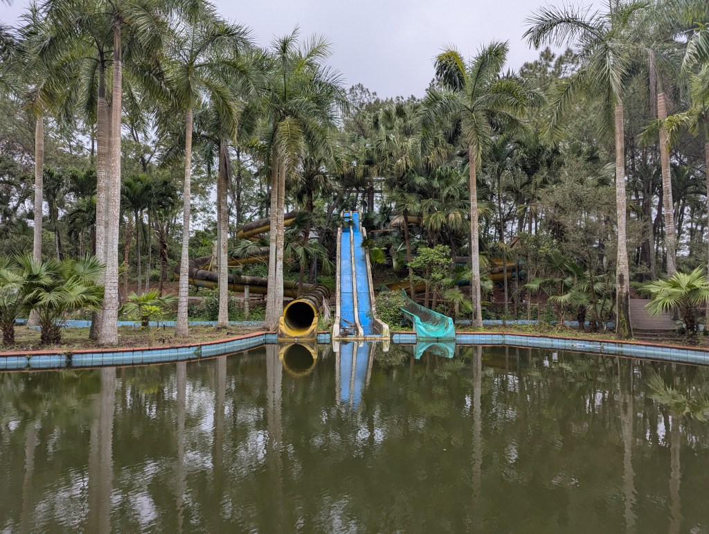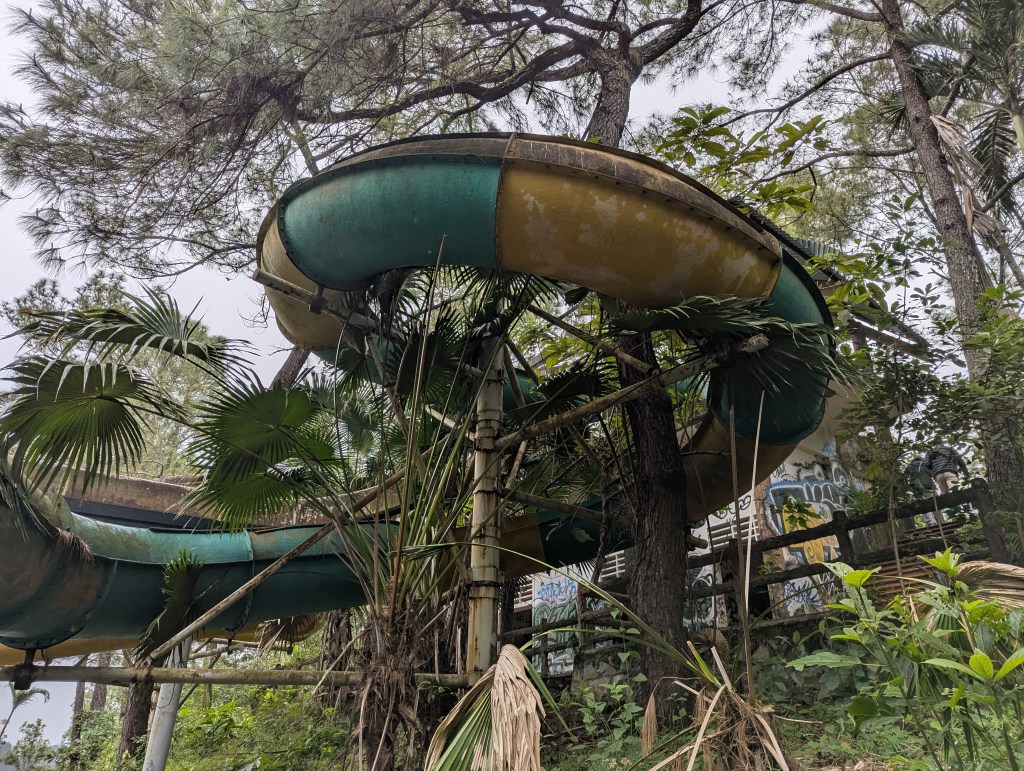 I feel like most of the attractions there were disassembled and taken away, as we only found a huge dragon-shaped building, waterslide, and some weird van, elevated at 1.5 meters above the ground. I hugely recommend going there with friends, as playing Bella Ciao from your speaker in a huge stone dragon in a group is fun; doing it alone is kinda creepy.