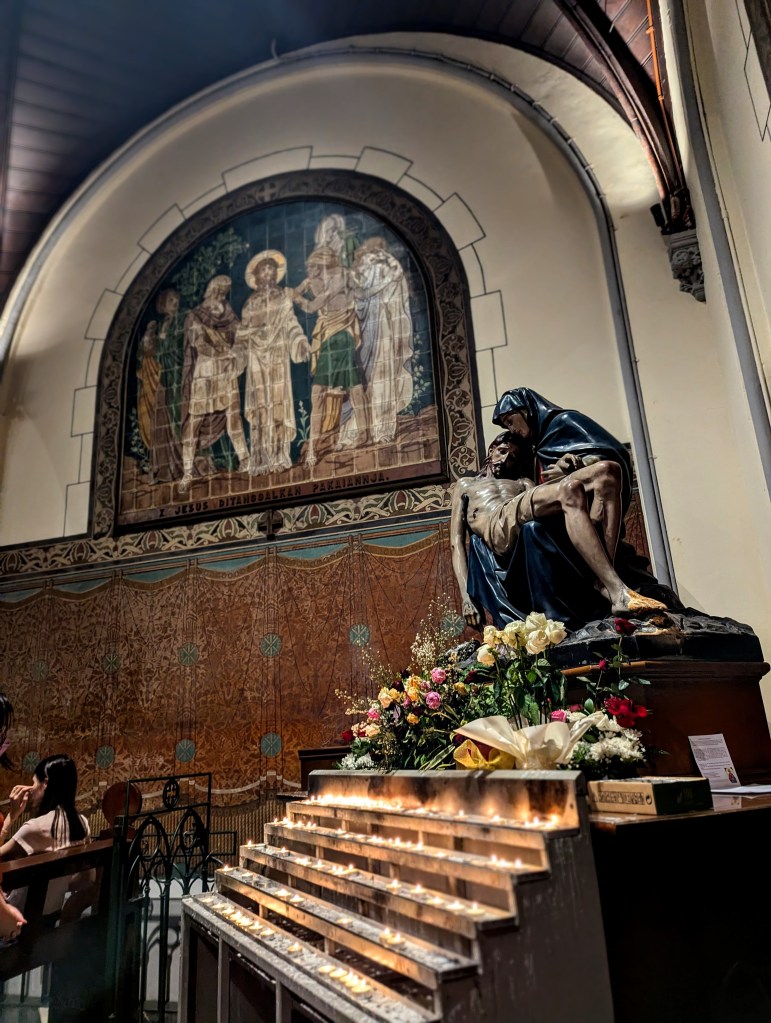 Last but not least, we saw the church and the mosque – both taking around 15-17 years to be built, right in front one another on purpose – to signify the peace in which different religions co-exist in Indonesia. For VIP guests like Barrack Obama, who grew up in Indonesia (and got bullied at school for being the only black kid), they constructed a special underground tunnel to the mosque. We did not see the tunnel (not VIP enough!) but saw the square inside where he gave the speech later on in his life.