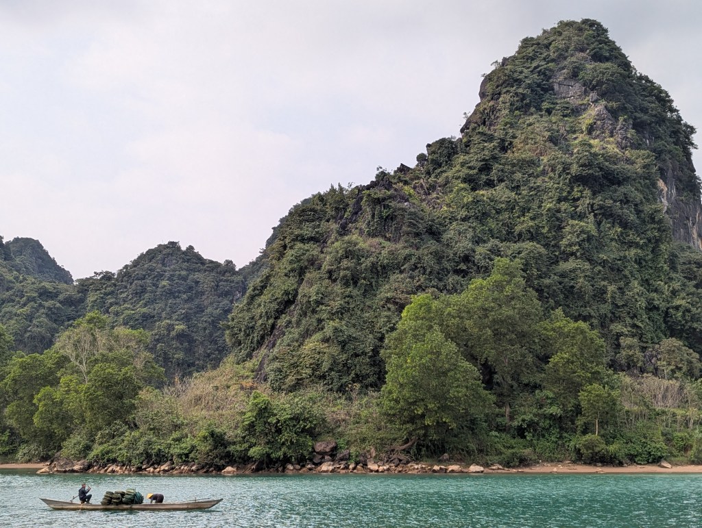 Last but not least, I took the boat 5 km up the river to see the Phong Nha cave. I should mention the amazing blue color the local waters have. Its a very bright blue with some green undertone, and its unreal to capture by camera, or to wrap your mind that it is even real at all.