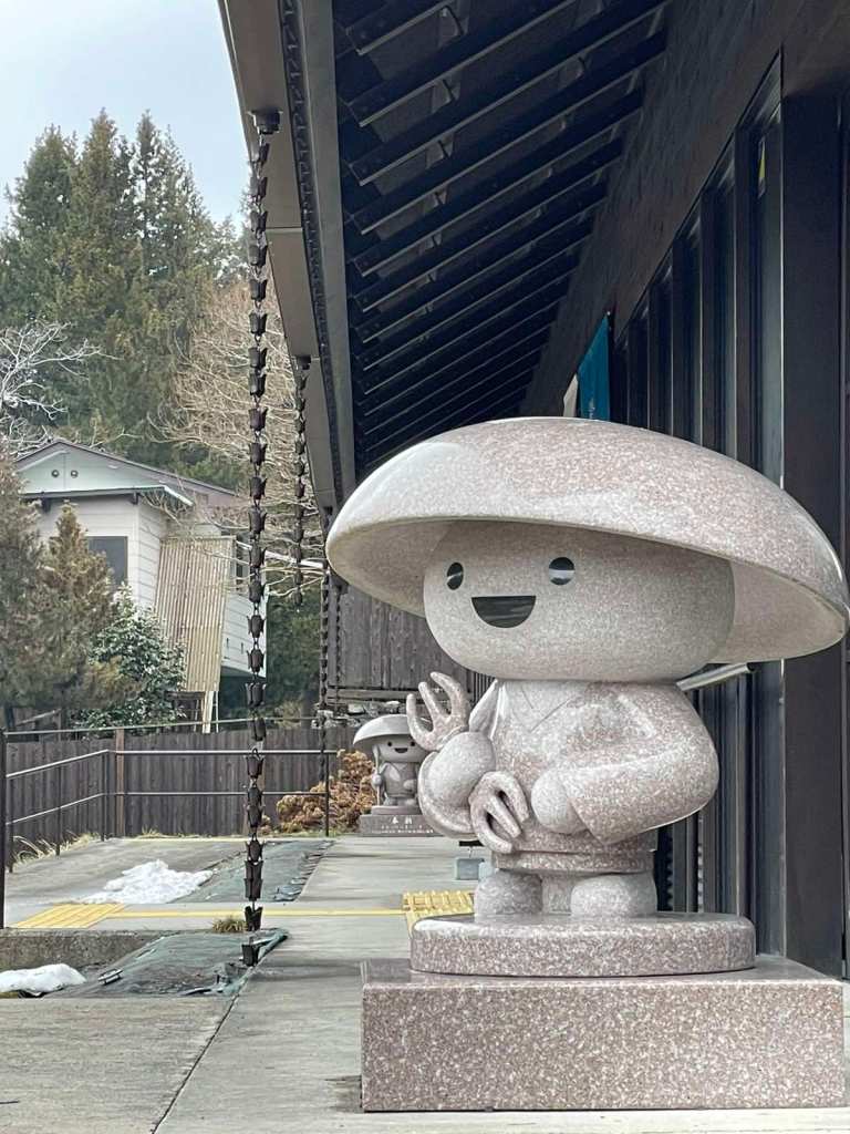 Every Japanese town has a local mascot – usually it is a small cute animal, plant or magical creature. Apparently, there also has been a local Koya feature – something to do with small patches of decor patterns, which would be put on ceilings in the common areas, and also sold as collections of fabric patterns in the souvenir shops. This one I saw at the terminal station: