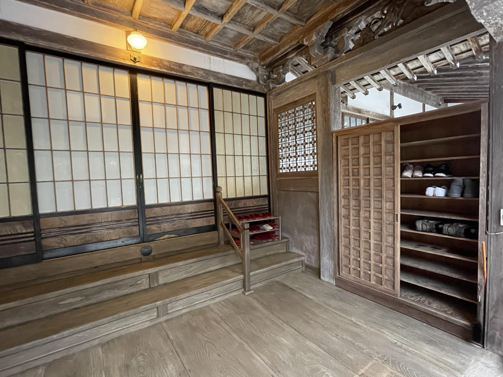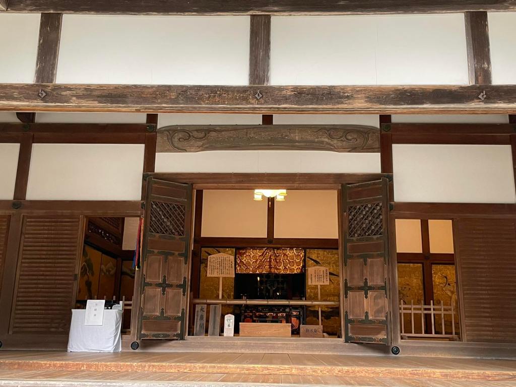 A small temple Fukuchi-in, resembling a fair-sized household, greeted us with open doors. A young monk who spoke poor English (better than nothing!) and was obviously blushing, pointed at the shoe rack, asking us to remove our shoes and taking some red in-house slipper instead.