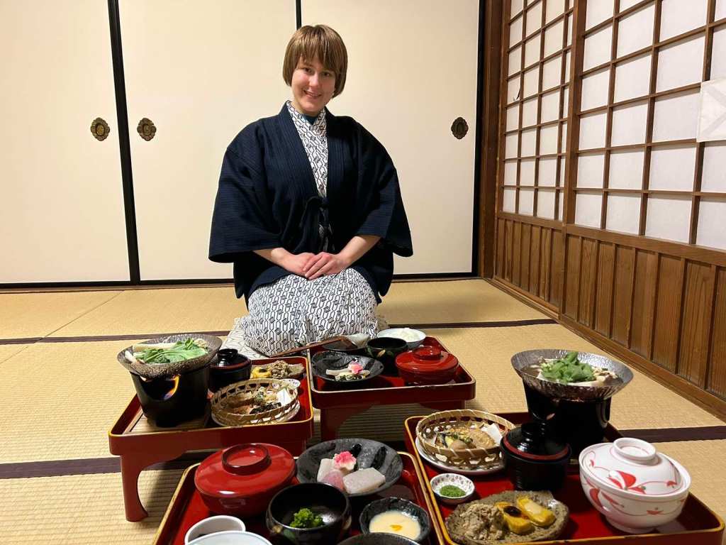 We then proceeded to a room with some warm tea and rice crackers. After about an hour, another monk came to show us our room. It was a traditional Japanese room layered in tatami, with small Buddhist temple for prayers, tea area, and a set of yukatas – a simple dress used as a common clothing at home. We were then called for a bigger dinner – all plant-based (heaven for vegans), steamed or boiled.