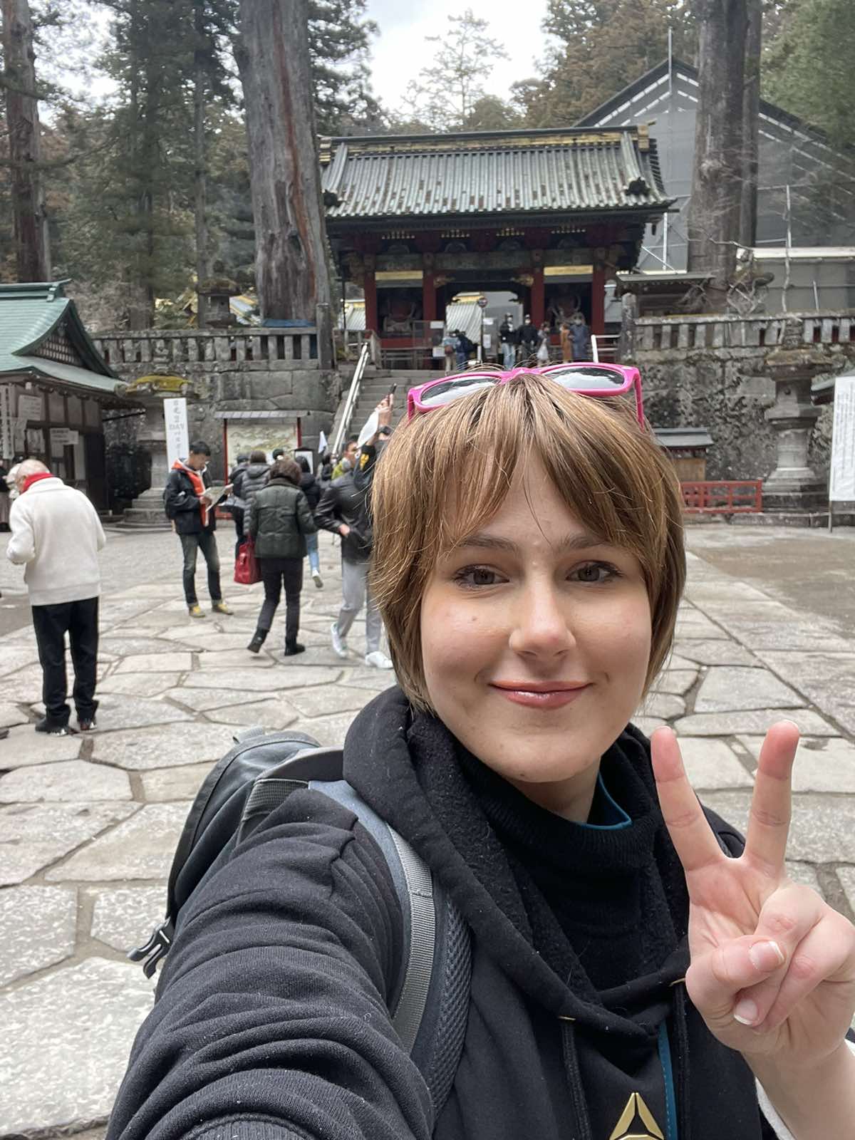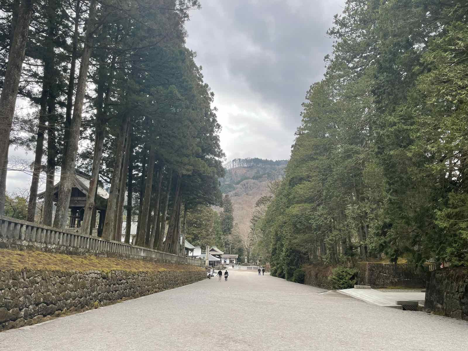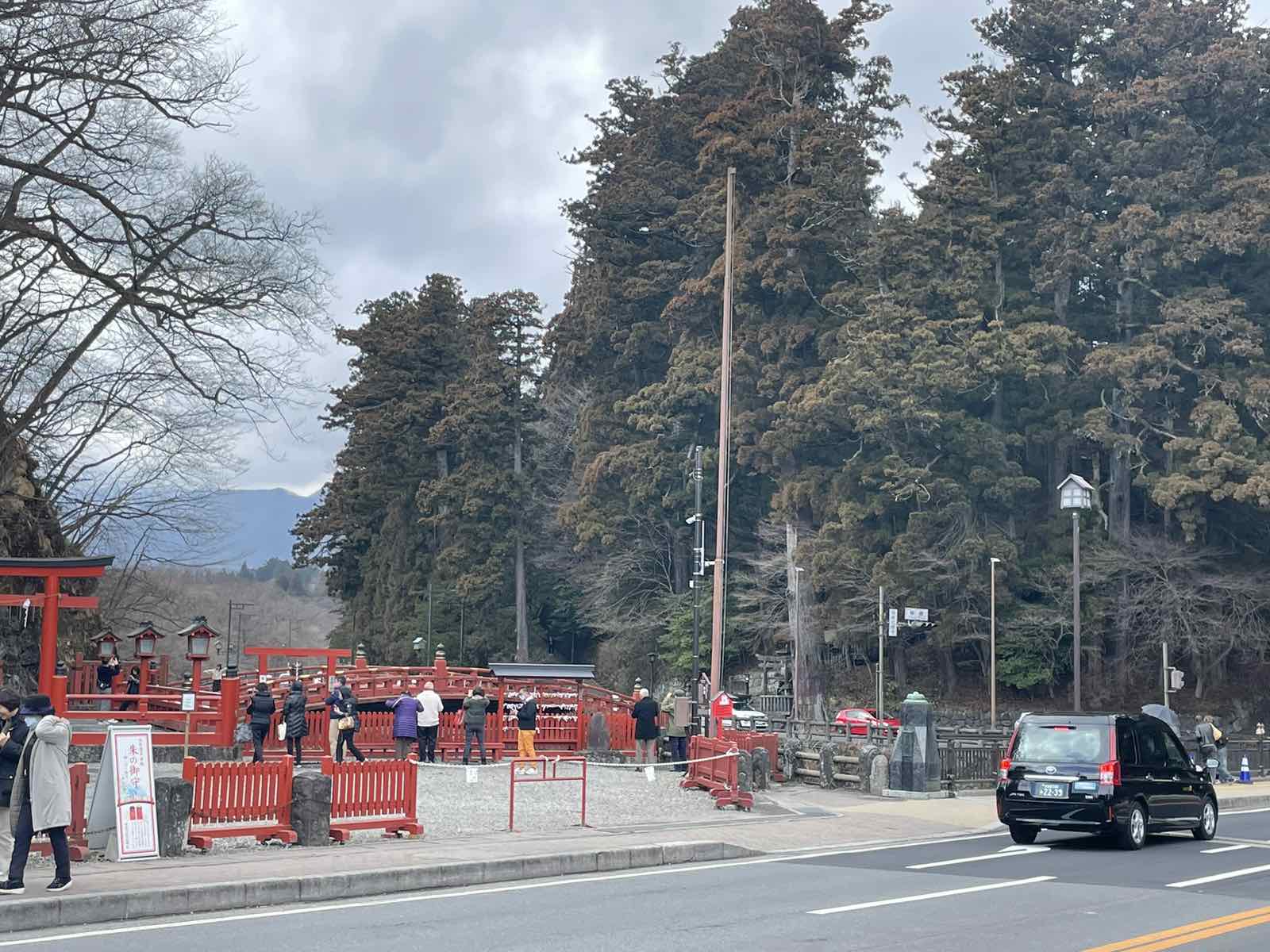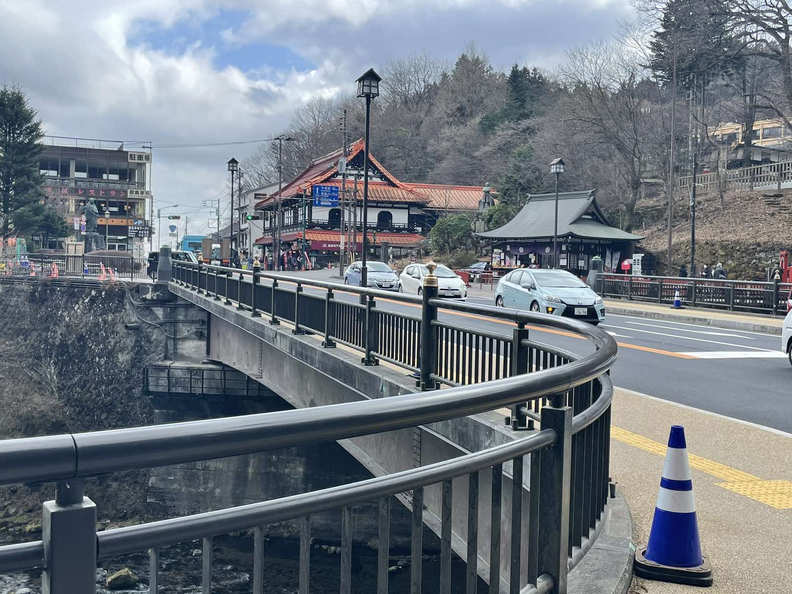 A beautiful carved bridge connected the Nikko forest and the town, rising high over the wide but shallow river. The forest was right underneath the mountain, so I was constantly travelling up through pine trees and small bushes. There was almost no grass – just the pine needles which lay the forest floor.