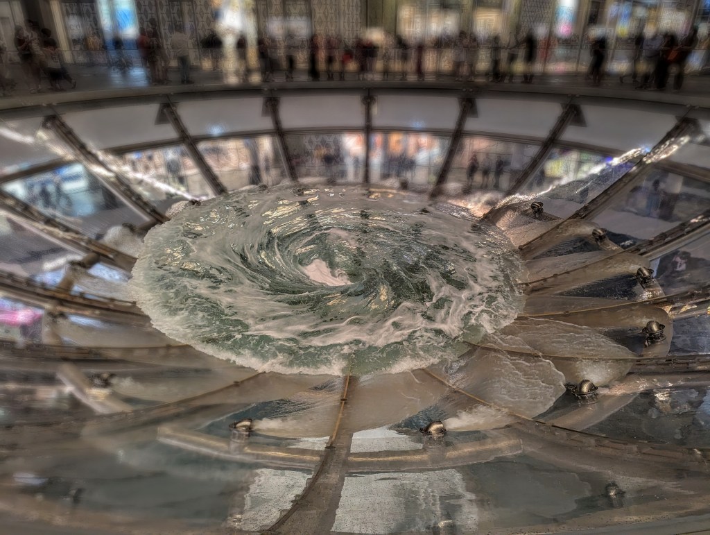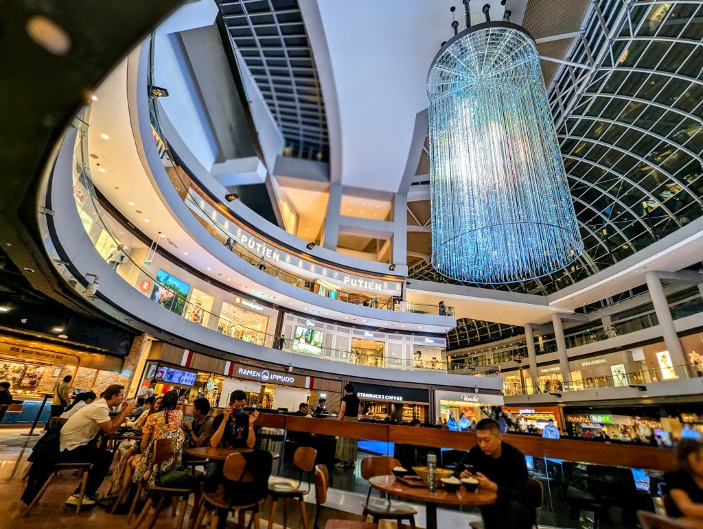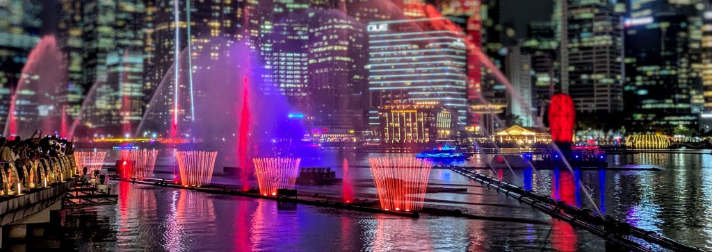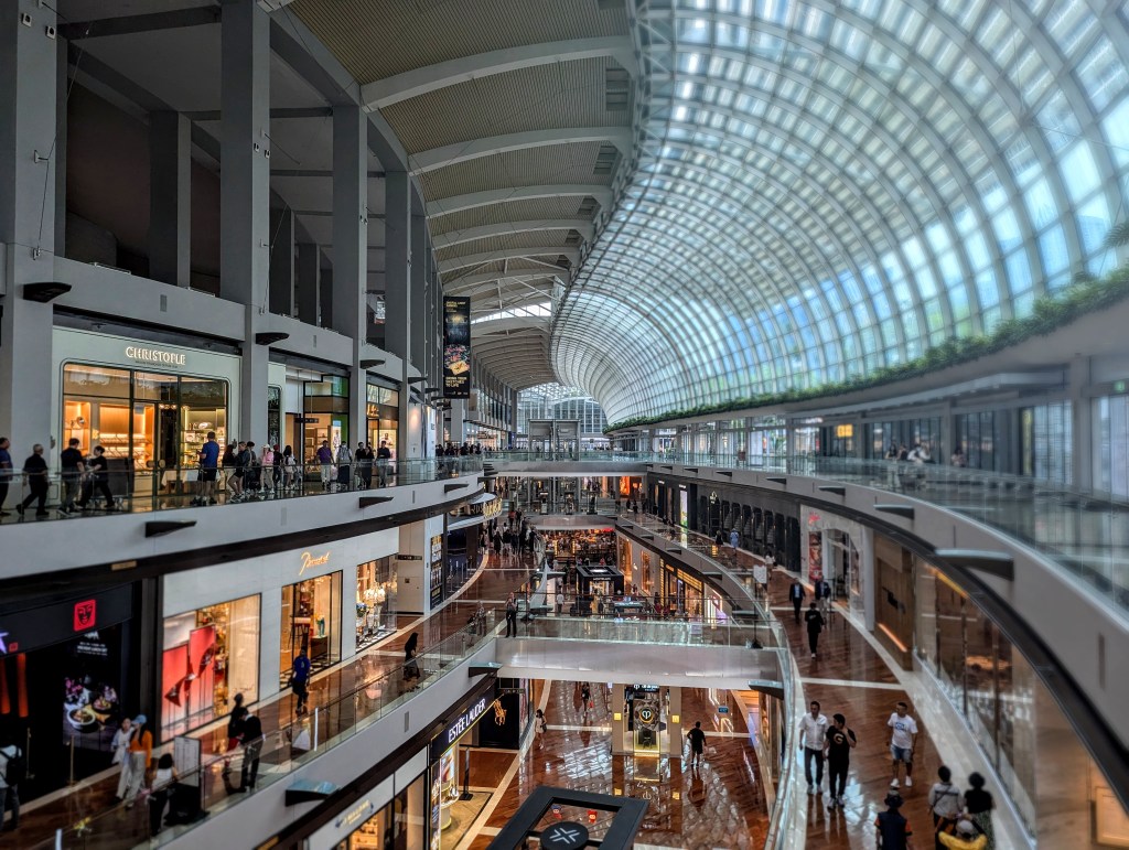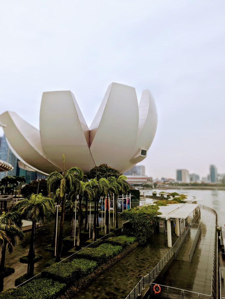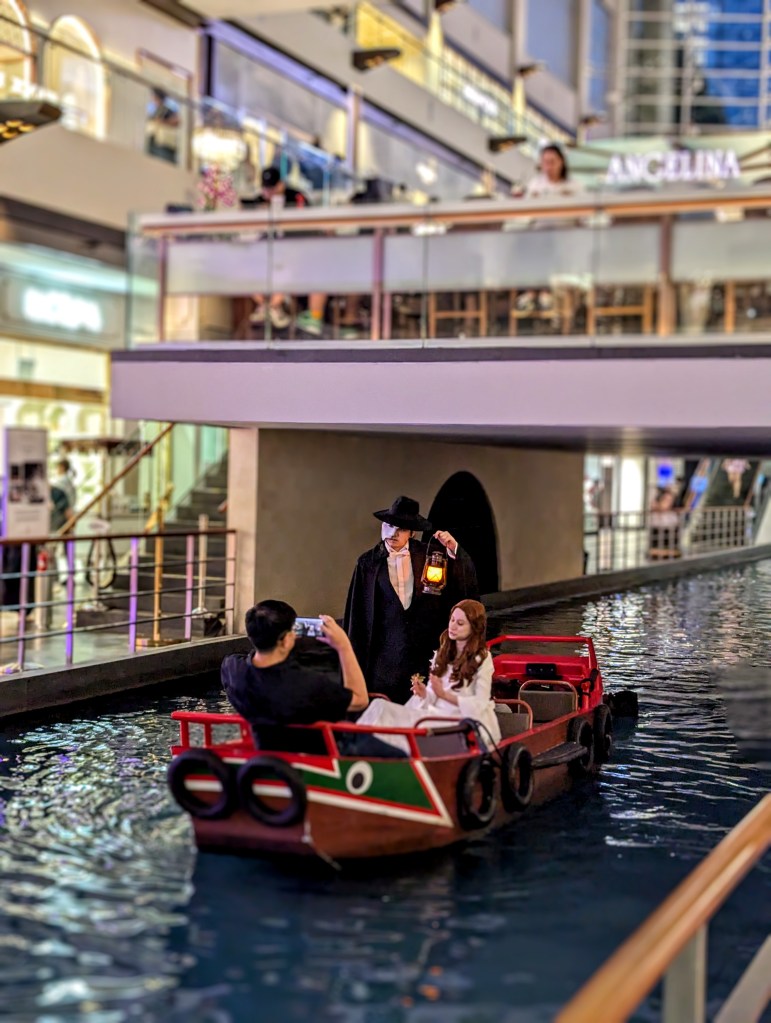 I ended up trying some Turkish donuts – lokmas. And made my way through the rain, powered by the sugar boost, to the Helix Bridge, overlooking the Art Museum and the fanciest, most expensive mall I have seen in my life – the Mall on The Shore. The management seemed to collect famous brands like Thanos collects the rings – the mall had everything from not so small coffee shops to Versace and Dolce Gabbana. The lowest level was decorated with the water canal, where you could get a ticket for a boat ride. In the evening, the boats also featured the Phantom of the Opera actors and musical accompaniment (see pics!). I am a big fan of both the book and the movie, so it was the highlight for me of this particular part of my tour.