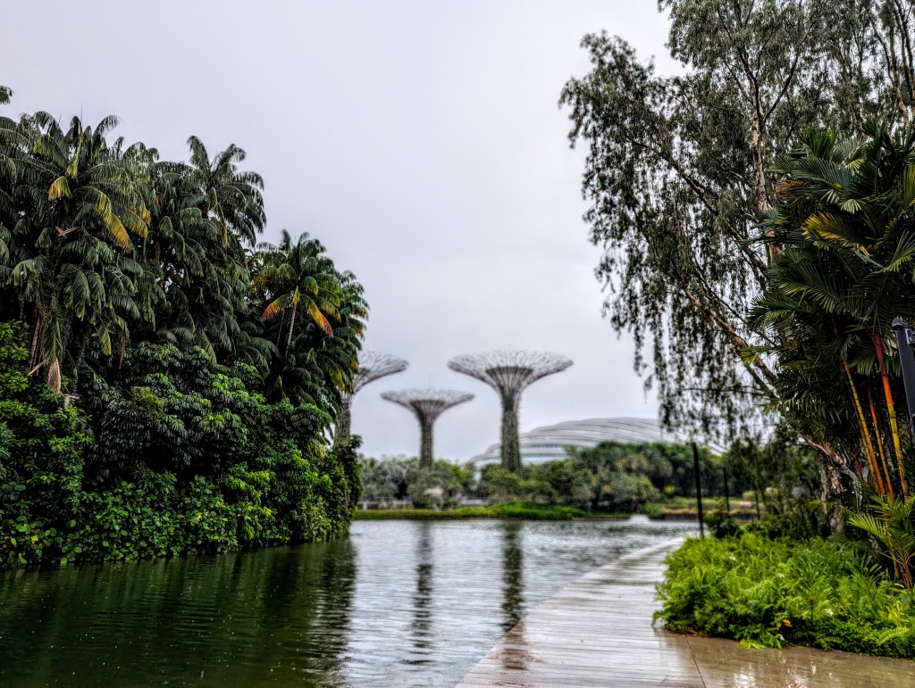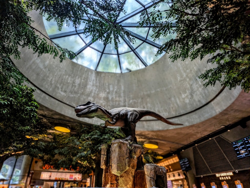 Of course, I saw the lookout point (but didn’t go up, its expensive, for what? White fog?), which looks like a boat that sits on top of the three skyscrapers. At the feet of the skyscrapers are the Gardens with conical / firework like metal structures, covered in green ivy. I tried some Laksa in the nearby stores, which advertised the dinosaur exhibition – my stomach voted for Laksa being more important than the exhibition ticket, so I just watched some dinosaur figures in the food plaza, that would come alive from time to time, move their heads and roar.