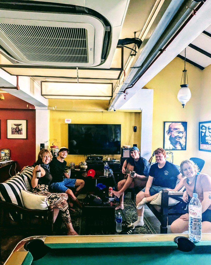 Me, Cooper and Jack ended the day getting an amazing foot massage (paid 30 bucks for it, but it was worth it – very professional, and a different level from 8 dollar massages in Vietnam or Indonesia). However, I will most remember the part of the day when the boys were playing guitar in the hostel lounge area, me and Lois sipped the beers, and Jess was circling around in the office chair.