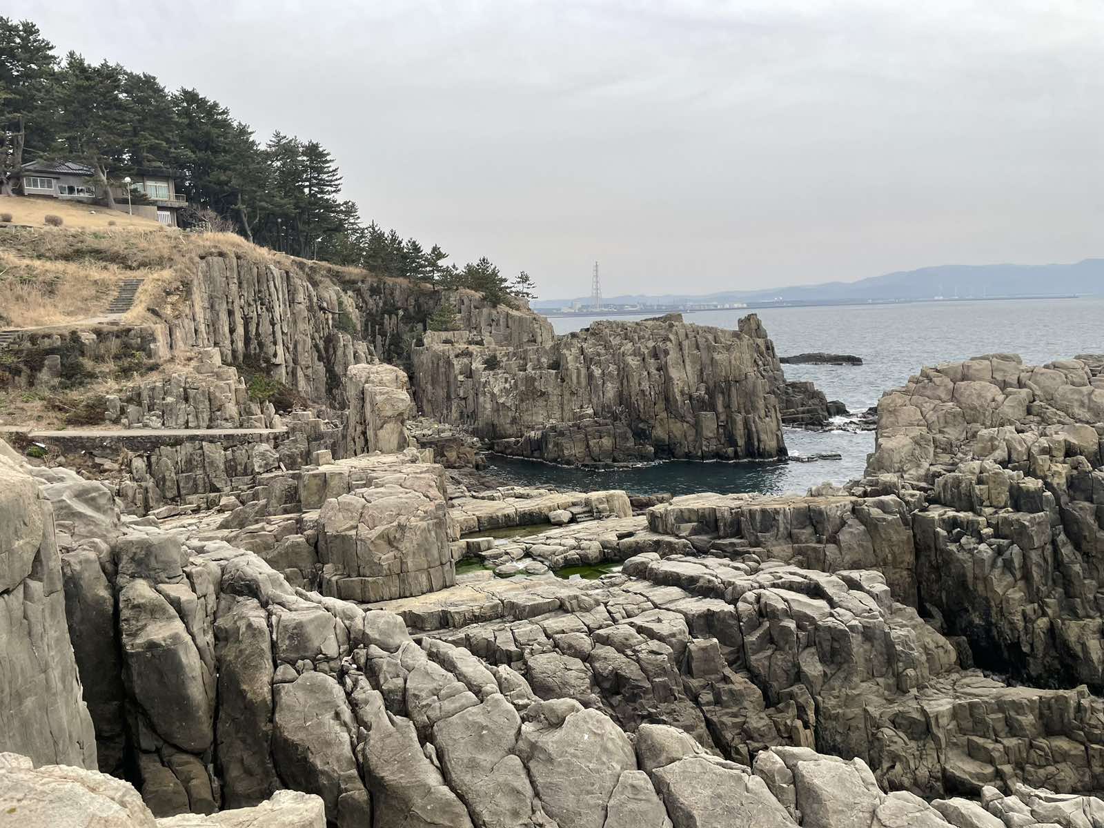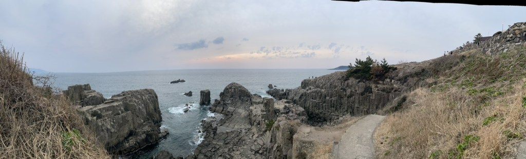 The Tojinbo Cliffs are a very peculiar geologic structure, formed roughly 12 mln years ago. Significantly polished by sea waters and salty breeze, the dark grey columnar joints are recognized as one of the natural heritage sites. There are only two more similar sites around the world.