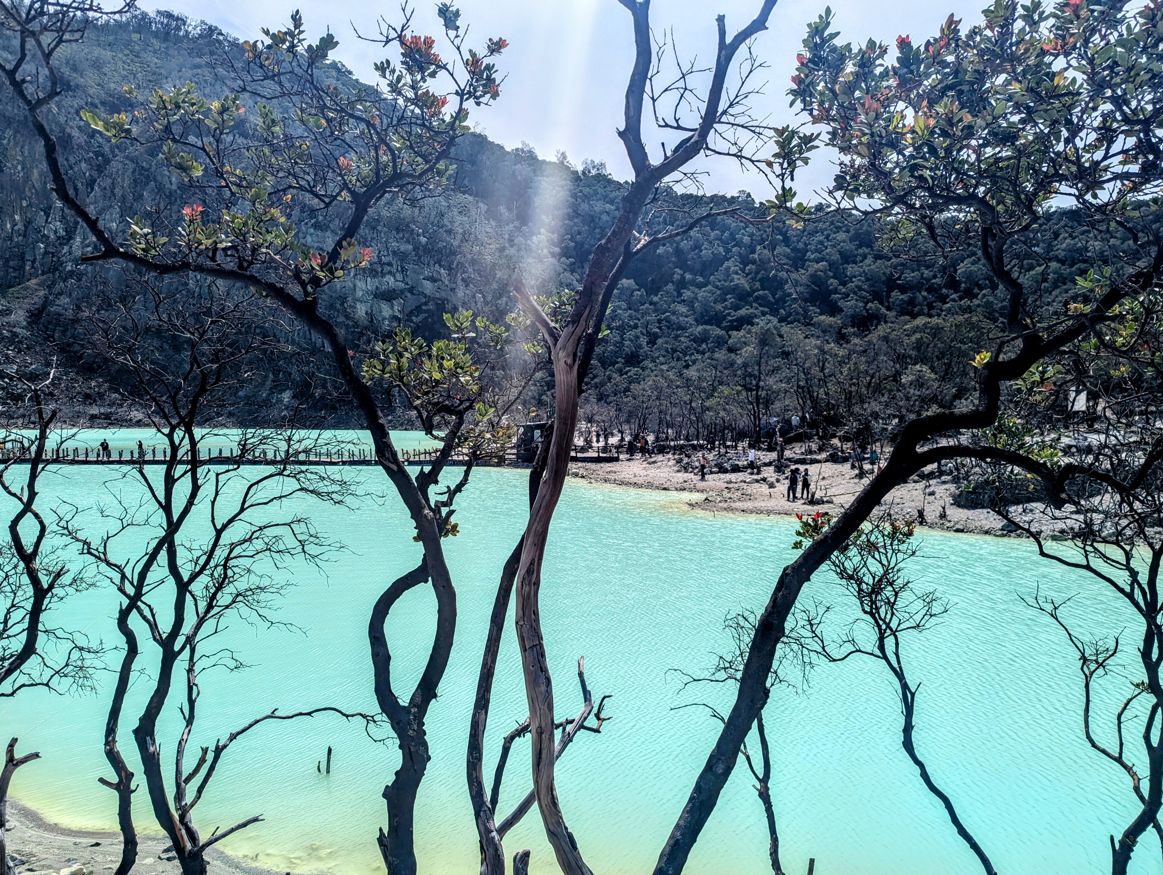 The first stop was the White Crater – the place where life seemed to be put on pause since the prehistoric times. I almost expected to see a T Rex, roaring somewhere from a cliff. If it was not for the people chatting and the noise of tires from the shuttle bus transporting visitors, the egg-stinking turquoise lake would be absolutely silent. Dead quiet. No birds or crickets, just the unreal blue surface of the lake and still yellow shore waters.
