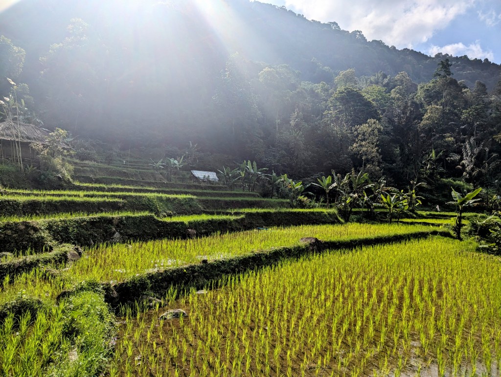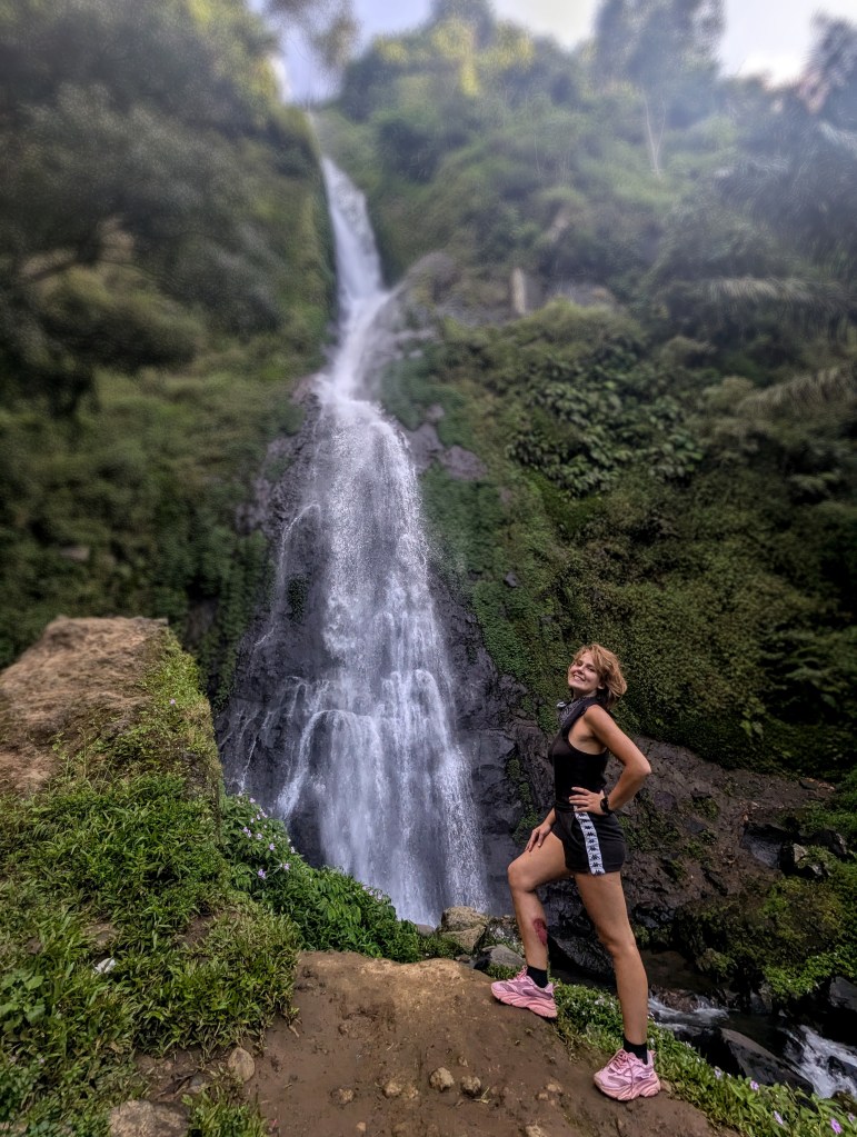 We drove for about an hour to set on the most beautiful hike in my life – across rice fields, into the mountains, through rich green sea of tall grass, almost drowning in warm sunshine. 3-kilometer hike of such breathtaking beauty it felt like a casual 15-minute walk. We ended up at our destination – the mesmerizing waterfall, water falling down with refreshing breeze from a steep, high cliff. Why am I even describing it? Just see the pictures for yourself and keep in mind the camera took away 10 times the magnificent view. You are never able to capture the ful “wow” effect with man-made lenses. Your eyes and memory are the only ways to fully absorb and at least try to preserve the beauty.