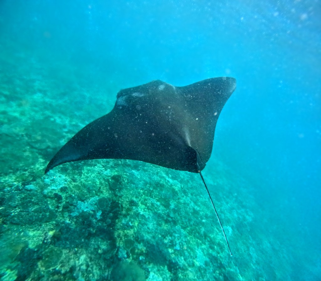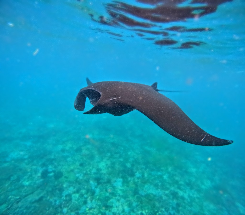 After a couple of days and listening to other people’s fantastic stories about manta rays encounter I rebooked the similar tour, but 300,000 rupiah cheaper, and with a slightly different beach route after the mantas. Turned out to be a complete scam, as we were constantly rushed, and did not get to go to two of the spots promised – but the goal was achieved, as I saw two GIGANTIC manta rays swarming below my feet. The huge, night-black creatures had something like a vacuum cleaner pipe opening for the mouth, where a small, yellowish fish would always swim, sort of “leading” the manta where to swim. The eyes of the creature were really friendly and “smiling”. Though scary at first, the excitement quickly overtakes as you dive in to see the 3-meter manta a little more closer.