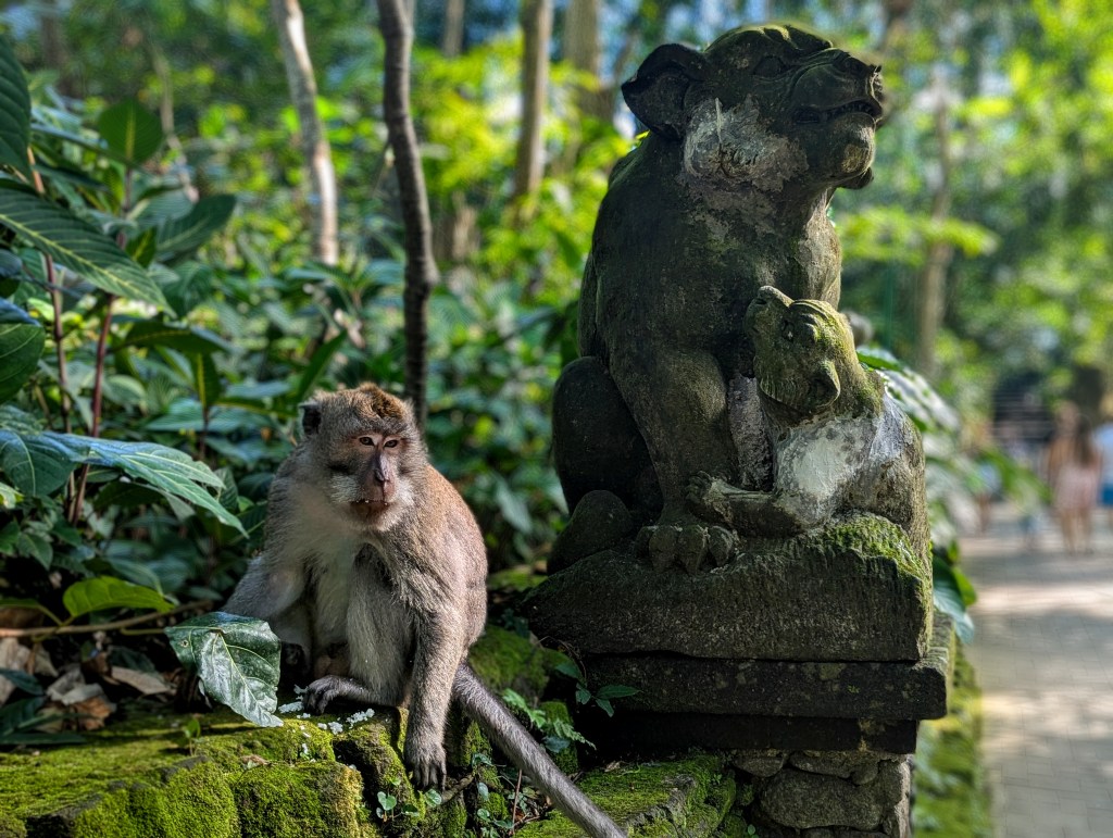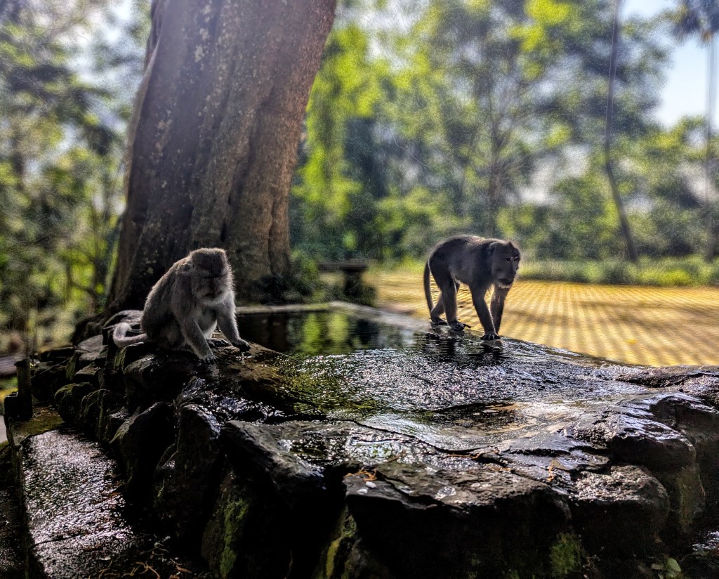 I made a mistake (or maybe I did not, as I was fun) by wearing bracelets and a colorful key chain on my bag to the monkey forest. First of all, let me say that monkeys are the cutest animals on Earth. But, they are also the quickest little bastards. They sae my keychain and immediately two young monkeys climbed up my knees trying to disattach the colorful medal from the chain. It was all fun and games until I realized they are not giving up, so I had to stand up and started swinging the bag rigorously until they jumped off. That absolutely human, offended look in their eyes I will not forget till my grave. Another time I was sitting on the side of the stairs, checking google maps, and the big and old monkey quickly came up to me, tore away the turquoise bead from the bracelet and started chewing it. I do not care about the bracelet but I genuinely hope the monkey is okay after attempting to eat it.